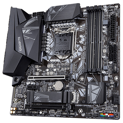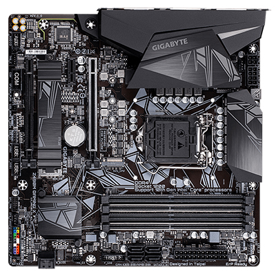 - Placa mãe Gigabyte Z490M GAMING X LGA-1200, mATX com suporte aos processadores Intel Core i9, i7, i5, i3 e Pentium de 10º geração com soquete LGA-1200.